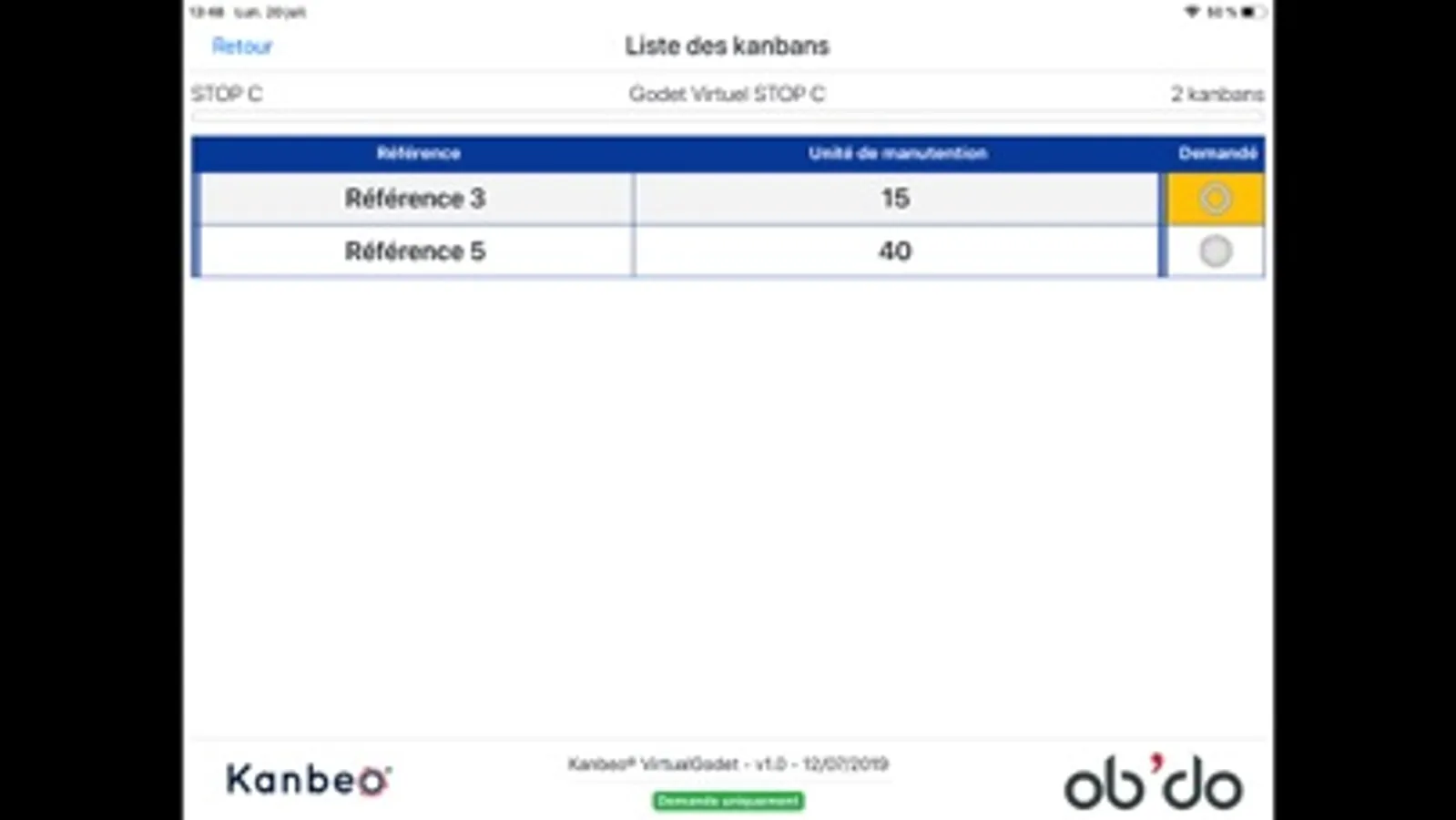 KanbeoVirtualBucket est l'application permettant à tout opérateur muni d'une tablette de pouvoir en temps réel réaliser ces appels de matière afin d'être livré des ressources nécessaires au bon fonctionnement de son poste de production.