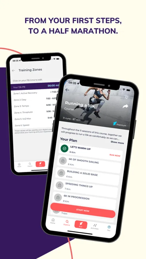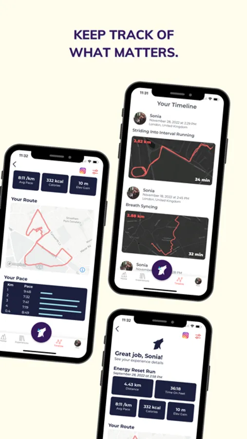 Run with or without audio guidance, track your runs and gain insights into your pace, elevation, calories burned, and progress over time.