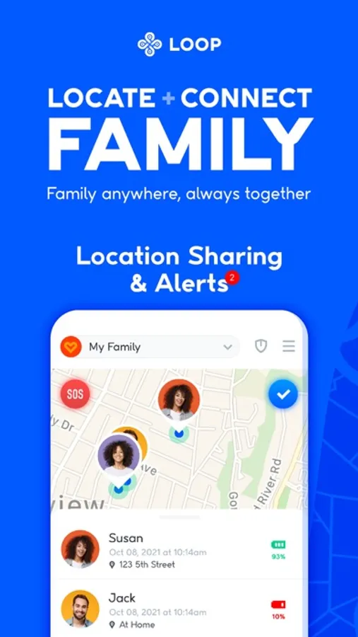 * Create a Loop and invite Loop members to view the real-time location of friends or family members on a private map.