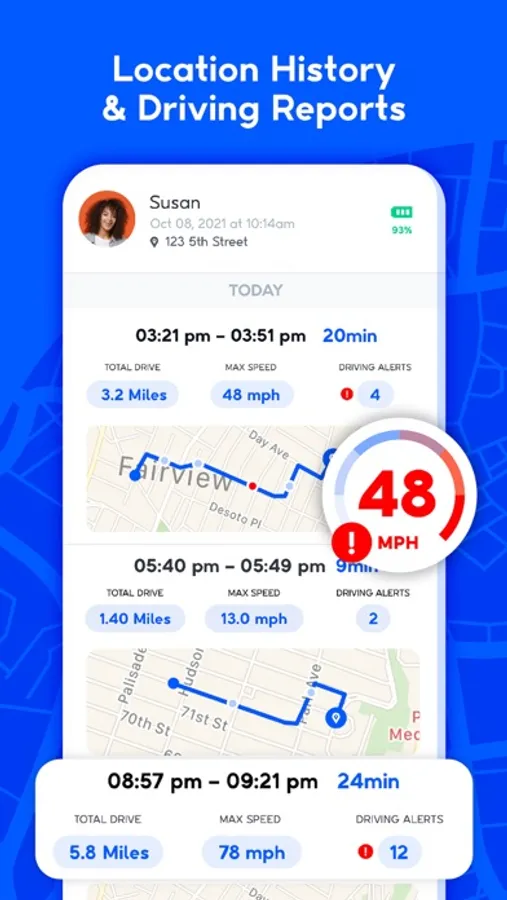 + Safety features built in for younger drivers. Get alerts for speeding, excessive braking, rough driving and more.