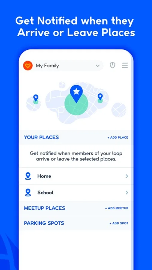 * Save or add places and get real-time alerts when a Loop member, friend or family arrives or leaves saved places like home, work, school, etc.