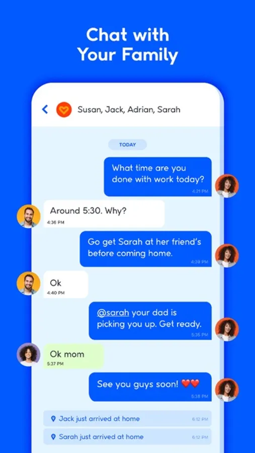 + Loop offers location tracking with safety features and directions to family members’ current locations with one click.