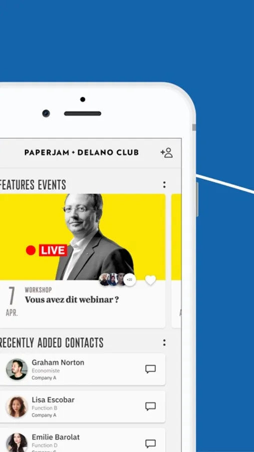 The Paperjam + Delano Club App allows you to organise your calendar, register for events, develop your business network and stay in touch with other Club members.