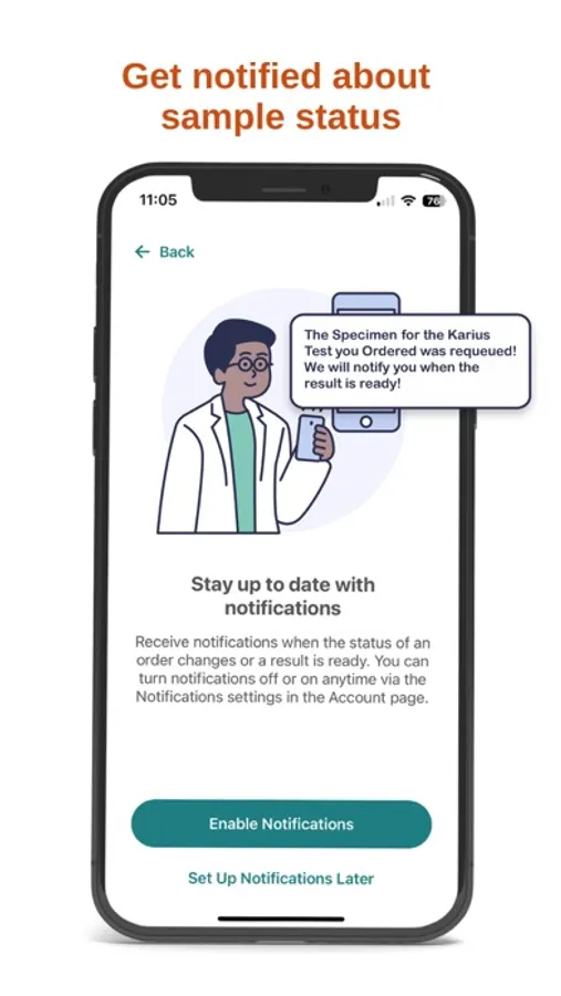 The app enables you to easily view Karius Test results and stay up-to-date on the status of orders.