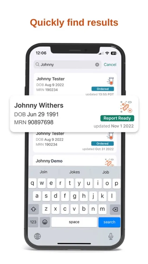 Results are available digitally as soon as they are released from our laboratory. You can also easily search through past results.