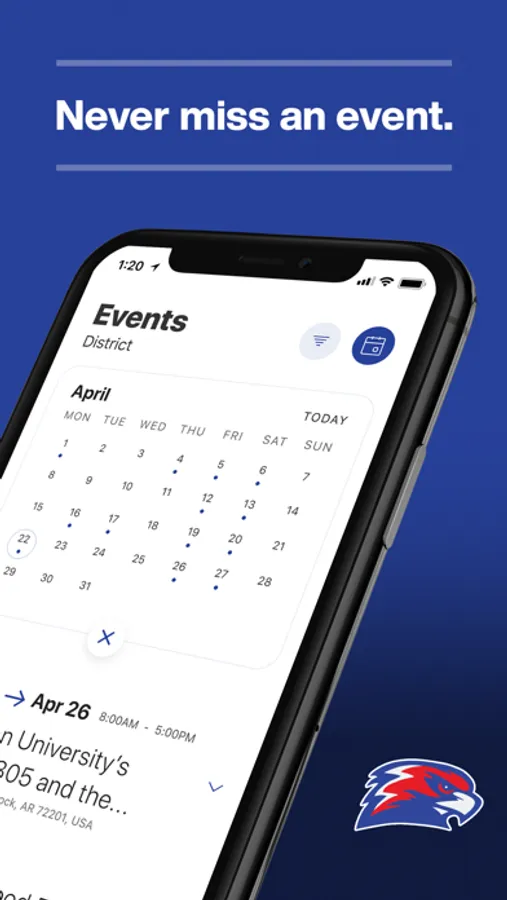 The event section shows a list of events throughout the district. Users can add an event to your calendar to share the event with friends and family with one tap.