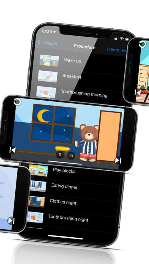You can show your kid a video of a daily situation when it is time to play, eat and sleep or use the alarm function to recieve a notification whenever it is time for your kiddo.