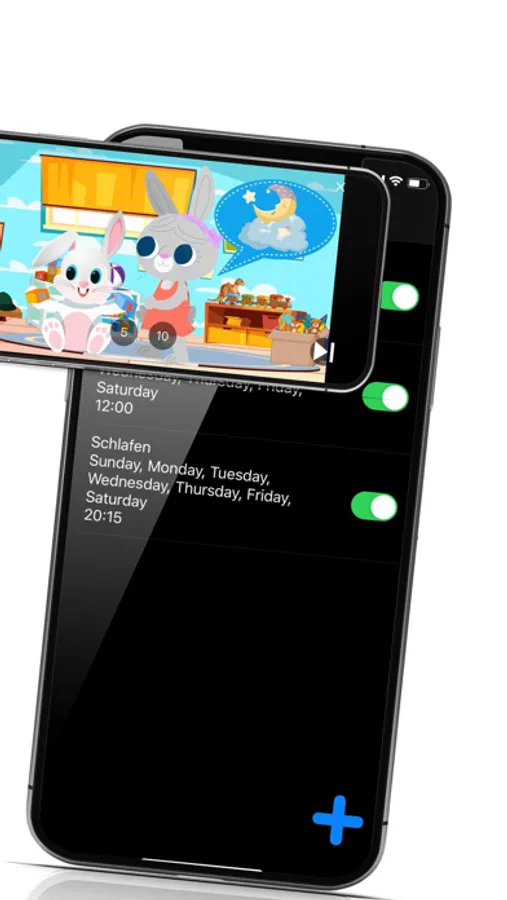 Du kannst deinem Kind wenn es Zeit dafür ist Videos von Alltagssituationen wie Spielen, Essen und Schlafen zeigen oder die Alarmfunktion benutzen um eine Benachrichtigung zu erhalten wann immer es für dein Kind Zeit ist.