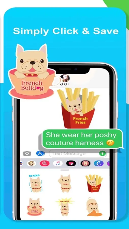 Share with your friends and all your loved ones the cutest Frenchie Stickers Collection for WhatSSApp and iMessage.