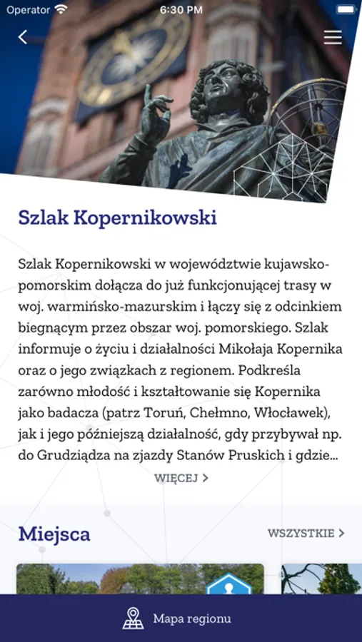Nasza aplikacja przyda Ci się jako przewodnik w terenie, przepustka do przygody i zapis trasy - byś mógł wracać do nowo odkrytych miejsc. Zwiedzaj je, rozwiązuj zagadki w grach terenowych i zbieraj punkty. Gwarantujemy Ci dobrą zabawę... Przy odrobinie szczęścia jeden z voucherów na pobyt w Konstelacjach dobrych miejsc, ufundowany przez Kujawsko-Pomorską Organizację Turystyczną może trafić do Ciebie. Choć miejsca kulinarne nie są punktowane w paszportowym rankingu – mamy dla Ciebie bonusy w postaci rabatów na produkty i usługi.