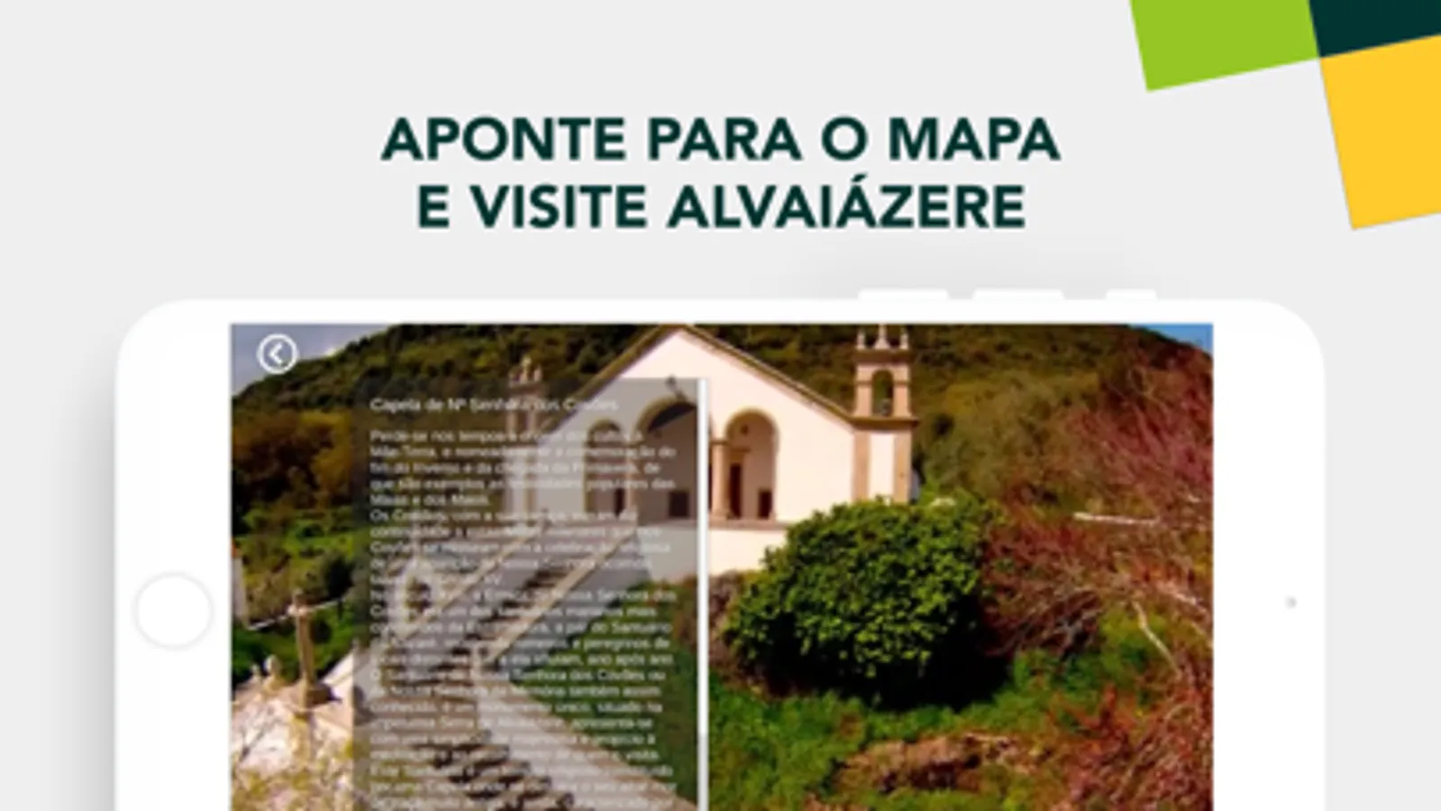 A APP permite aceder a informações relativas aos principais pontos turísticos do concelho de Alvaiázere, através de tecnologia de realidade aumentada. Aponte a câmara do seu smartphone para o mapa turístico do concelho, e aceda a um conjunto de informações que enriquecerão a sua experiência de visita.