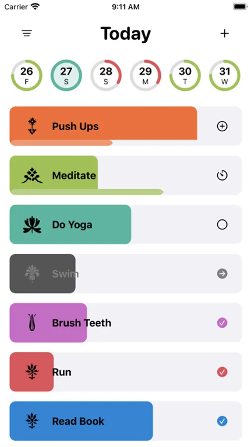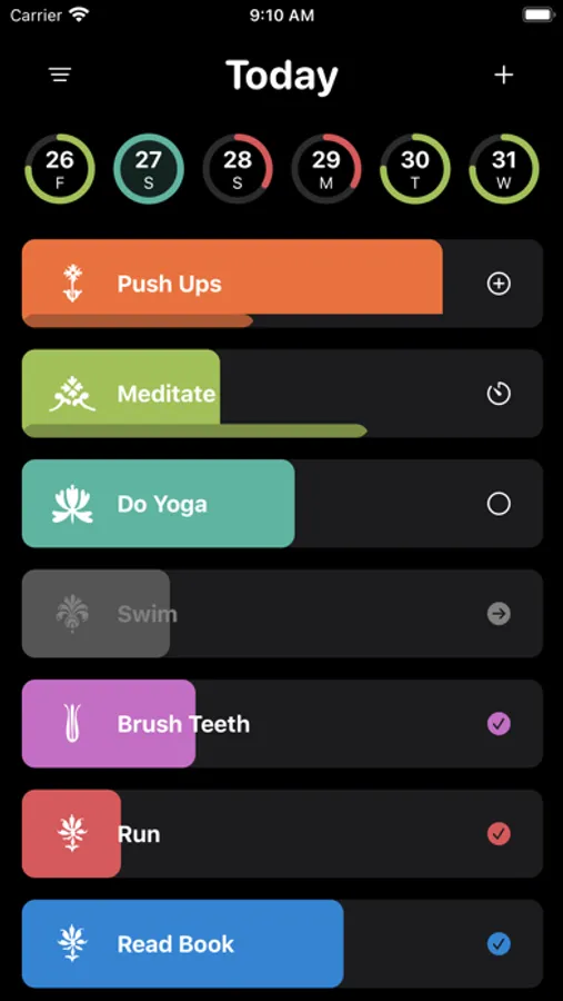 - use three types of habits (simple, counter, timer)
