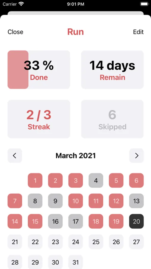 - set resting days which has no penalty for skipping