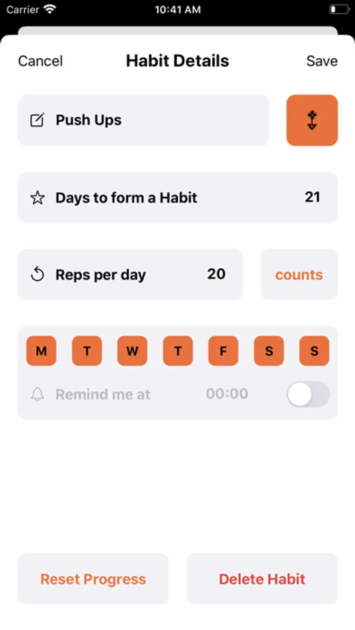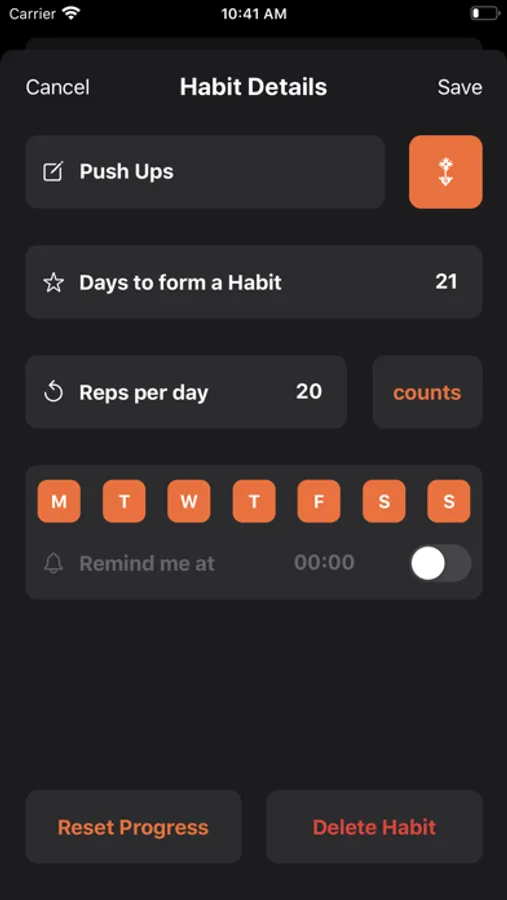 - set reminder notifications for every habit
