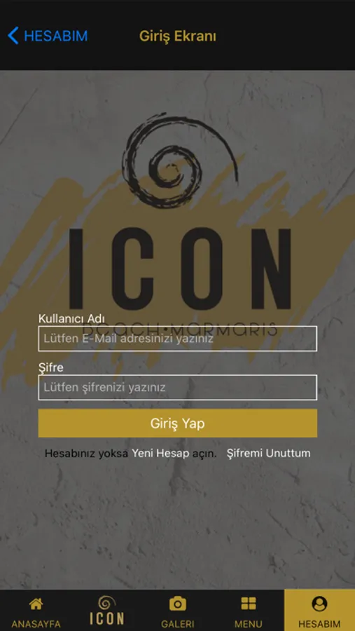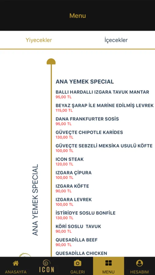 ICON Restoran ve Beach'lerde kullanıcının menüye erişimini ve kullanıcı bilgilerini barındıracağı kullanıcıya bağlı kişisel bir uygulamadır.