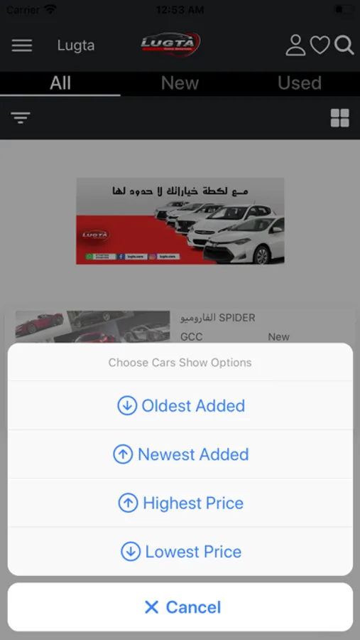 تطبيق لكطة لبيع وشراء السيارات، يهتم بسوق السيارات العراقي والاسواق المجاورة.