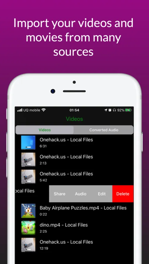Import your videos/movies from many sources like Dropbox, Google Drive, iFiles, WiFi Transfer. In addition, manage or share videos easily.