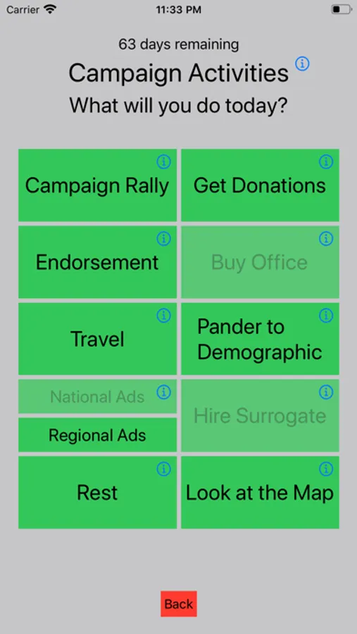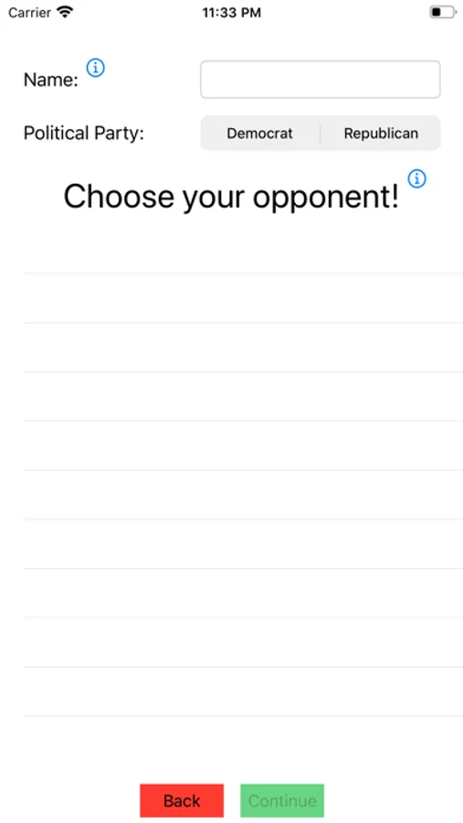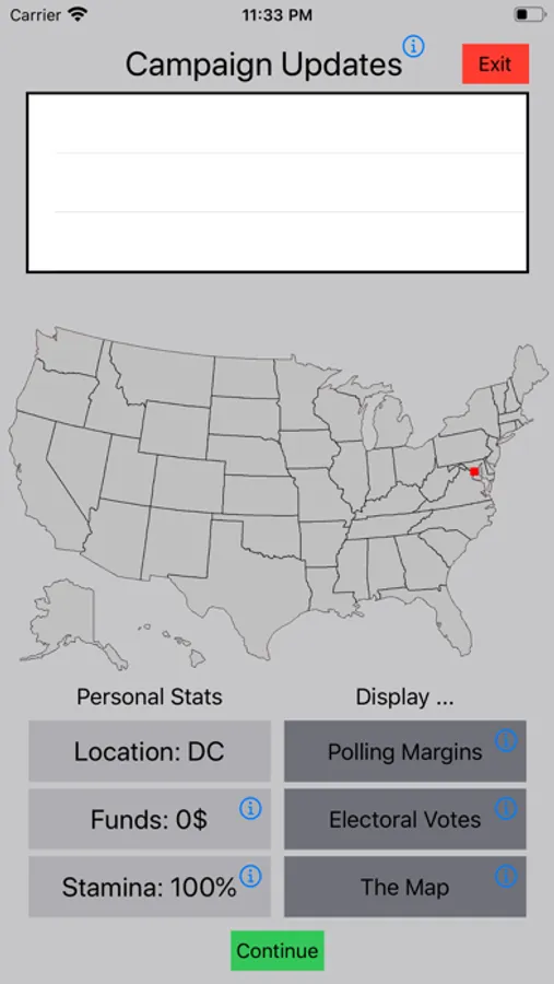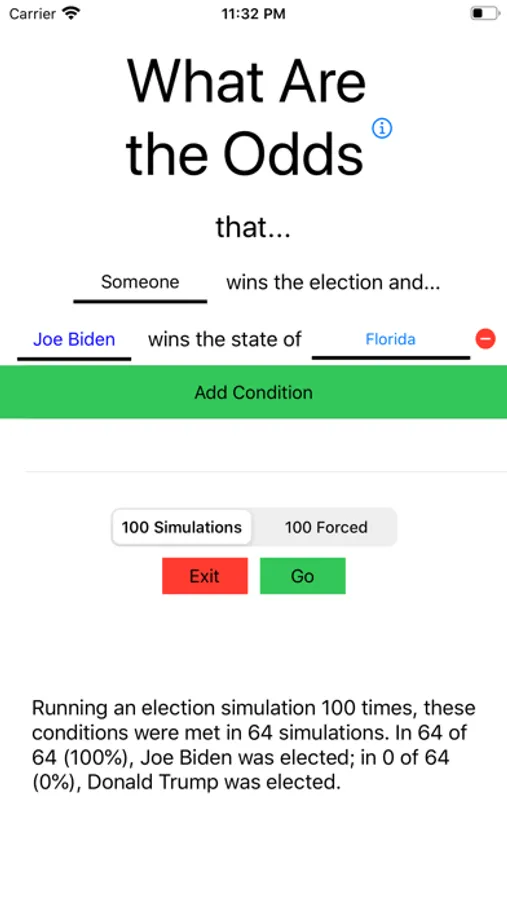 Election Accomplice is a two-part app providing an overview of the 2020 Election, and allowing you to enter the race as a candidate and try to win election yourself. The overview of the 2020 election provides an in-depth analysis of the election, allowing the user to investigate both the Democrat's and the Republican's odds of victory in any state, and in the whole of the United States. The election game allows the user to jump into the Election Race as either a Democrat or Republican, come up with a campaign ideology, run your campaign to the best of your ability, and watch if you win or lose on election night!