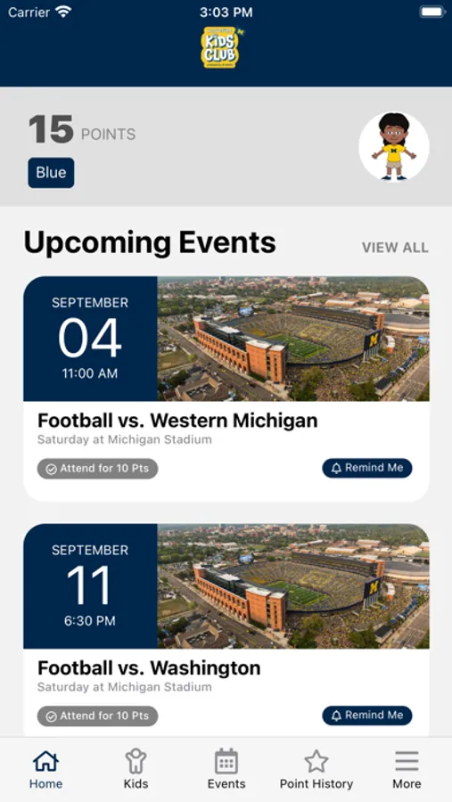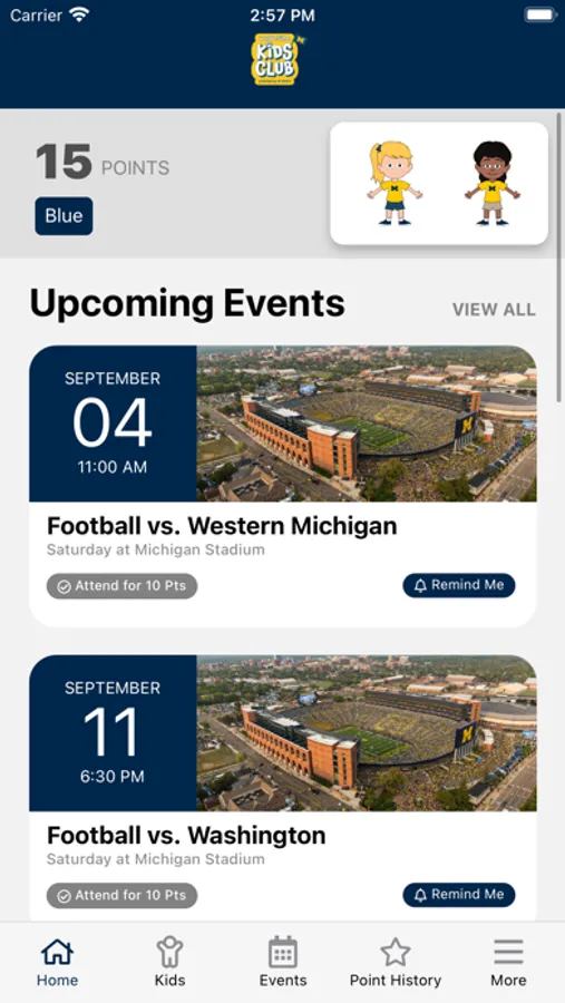The Wolverine Kids Club offers opportunities to the next generation of Michigan Wolverines fans, grades 6 and under, through exciting and exclusive VIP gameday opportunities, loyalty programming, and free tickets to select Kids Club games.