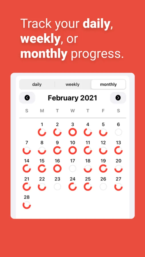 - Track your daily, weekly, and monthly progress in a beautiful interface
