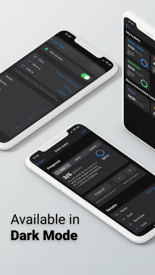 - Create as many habits as you wish