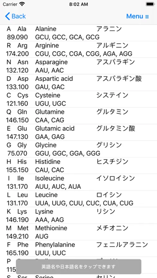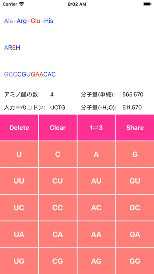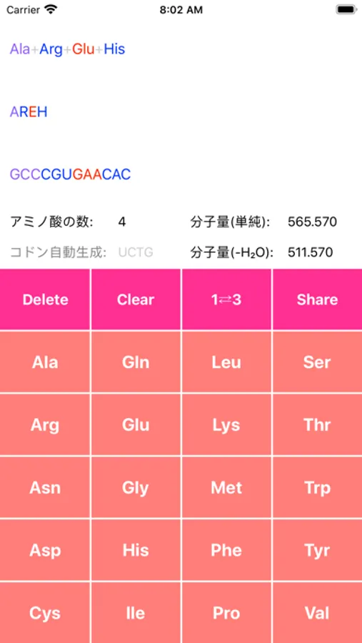 計算機ではアミノ酸3文字、1文字、コドンで入力できます。