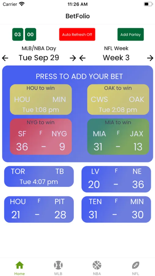 Add your parlays to quickly see how you are doing.
