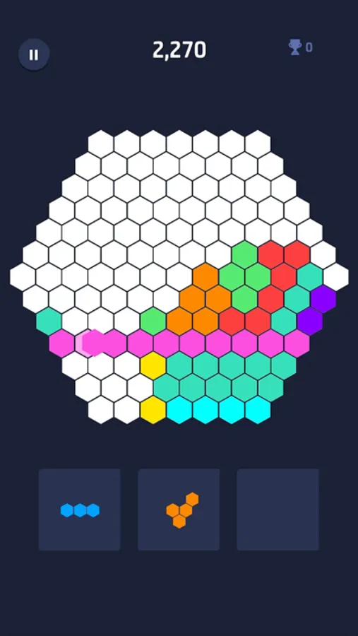 Put your puzzle skills to the test with this new approach on a classic block puzzle! Our unique hexagonal pieces will stretch your mind in ways you never imagined with this addictive puzzle game. Enjoy the satisfaction of pieces fitting neatly in place, filling the board with a burst of color! With each block that fills the gaps, your ability will grow – but so will the challenges!