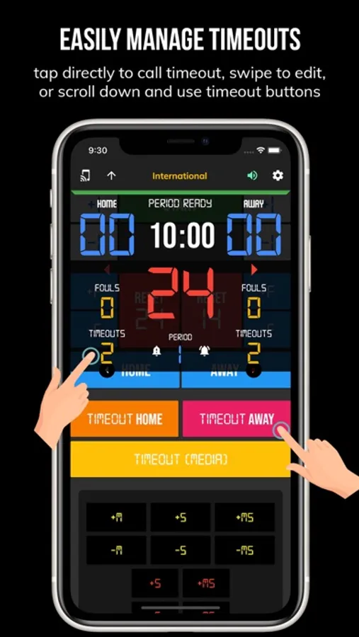 - Convenient timers: pregame timer, period timer, rest timer, timeout timer, overtime, etc.