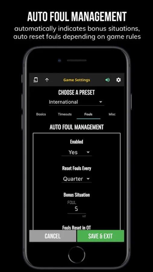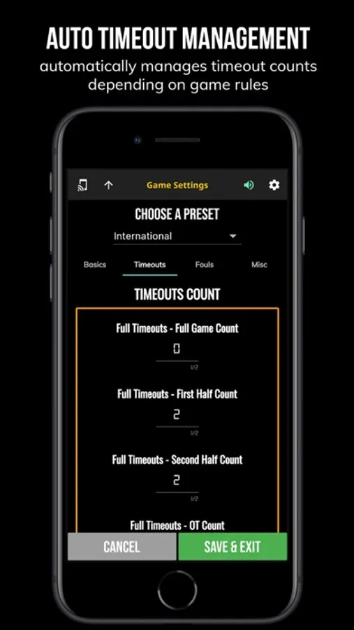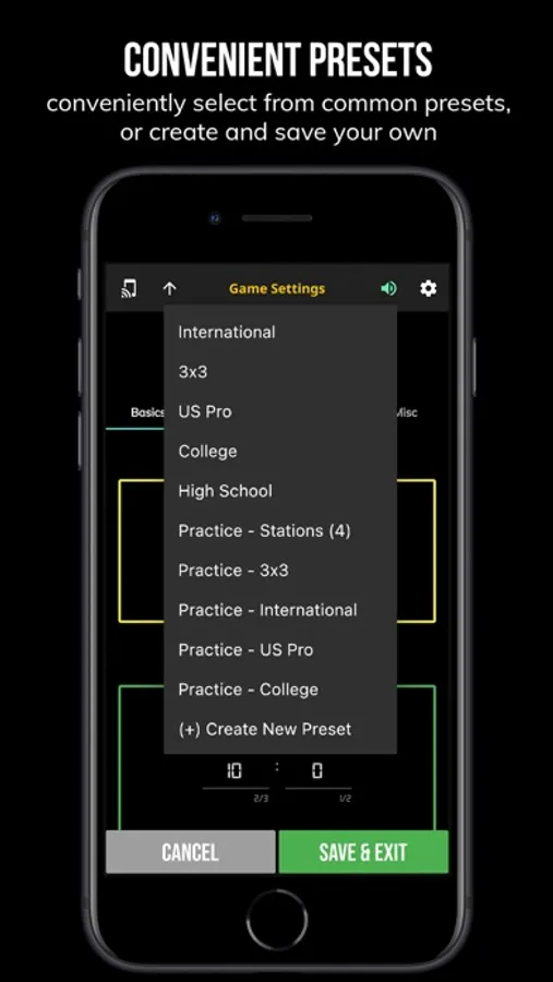 - Convenient Presets (International, 3x3, US Pro, College, High School, and more...)