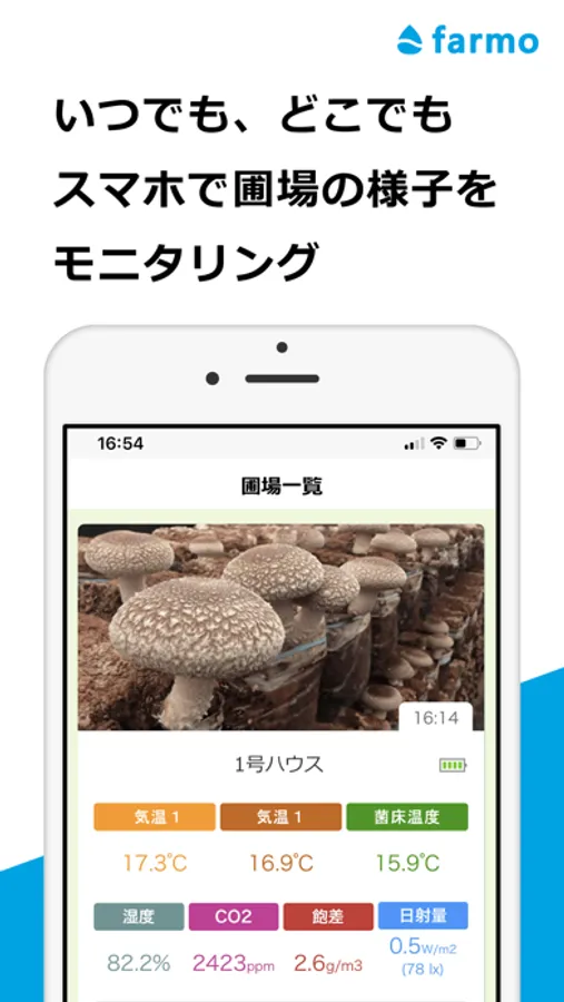 これからの農業には欠かせない、きのこ栽培用のモニタリングアプリです。