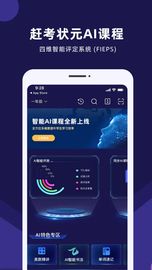 “赶考状元Ai课堂”四维智能评定系统(FIEPS),基于测评数据、学习轨迹、结果导向数据库模型,运用泊松方程在“思维反应指数微分、应试发挥指数微分、学习能力指数微分、综合能力指数微分”四维特征值重构知识图谱,利用闵可夫斯基四维时空时光锥理论,找到学生效用学习路径。“赶考状元Ai课堂”通过人工智能算法,分析学生错题原因,智能推断前后序知识点的掌握程度,形成学生个性化动态学习方案。