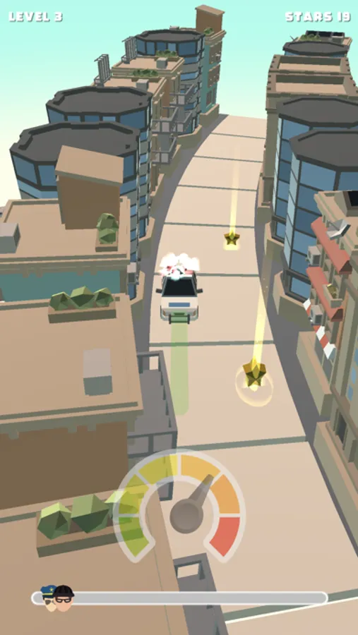 Touch and hold to turn into a police car and chase down the fleeing thieves. Tap fast to catch up and arrest them.