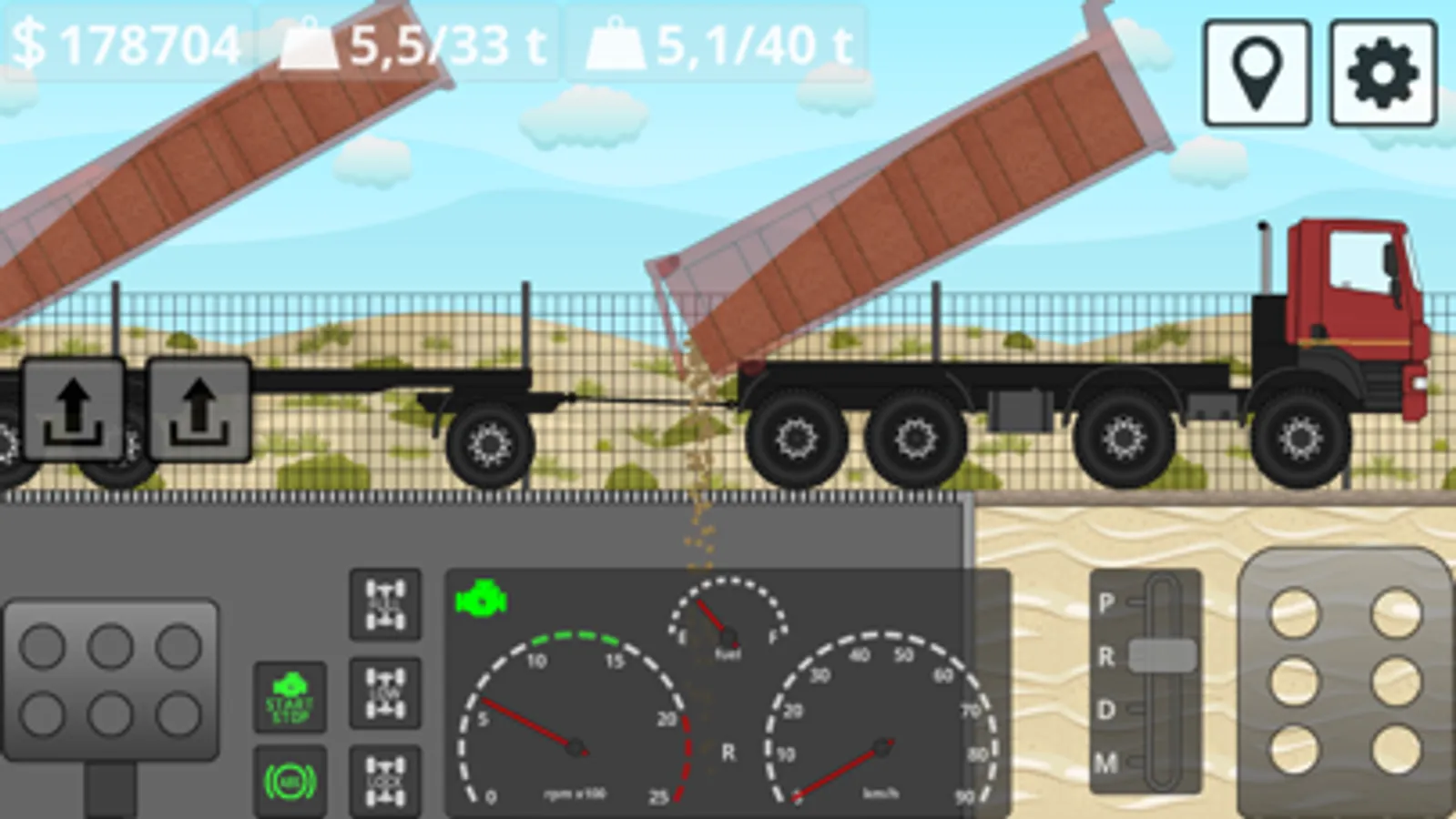 There are several vehicles with different specifications and load capacity in the game. Several types of equipment are available for cars: a tipper, a flatbed, a tank and a fifth wheel coupling. Also, a trailer can be joined additionally.