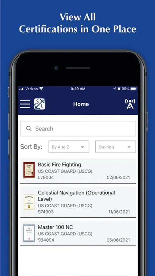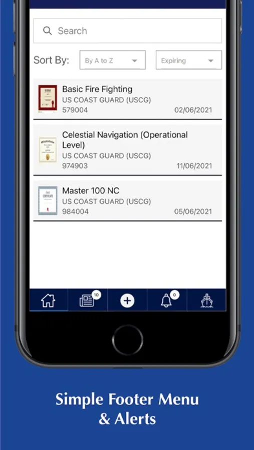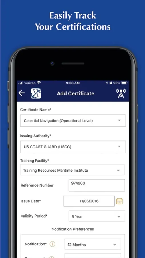 The SeaLogTM Credential tracking feature helps you manage your hard-earned credentials and training certificates with customizable alerts and reminders before the credentials expire. Receive notifica-tions on your device home screen and as text or email messages.