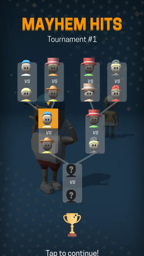 The game consists of tournaments with a cup at the end of each tournament. Each tournament consists of 3 games, and in case the players loses, the tournament starts over. The match ends when either the player or the opponent scores 3 points.