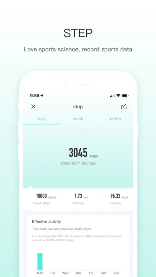 1)record the number of daily movements, calculate the daily consumption of calories, movement distance and time.