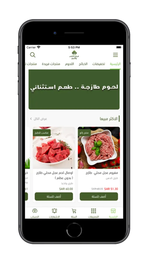 تطبيق متخصص بتوفير اجود انواع الذبائح واللحوم والدواجن المرباه في البيئة الطبيعية وتقديمها بشكل مختلف مع خدمة التوصيل