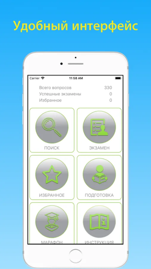 • Подготовка - Позволяет изучить вопросы в текстовом формате с отмеченными правильными ответами;