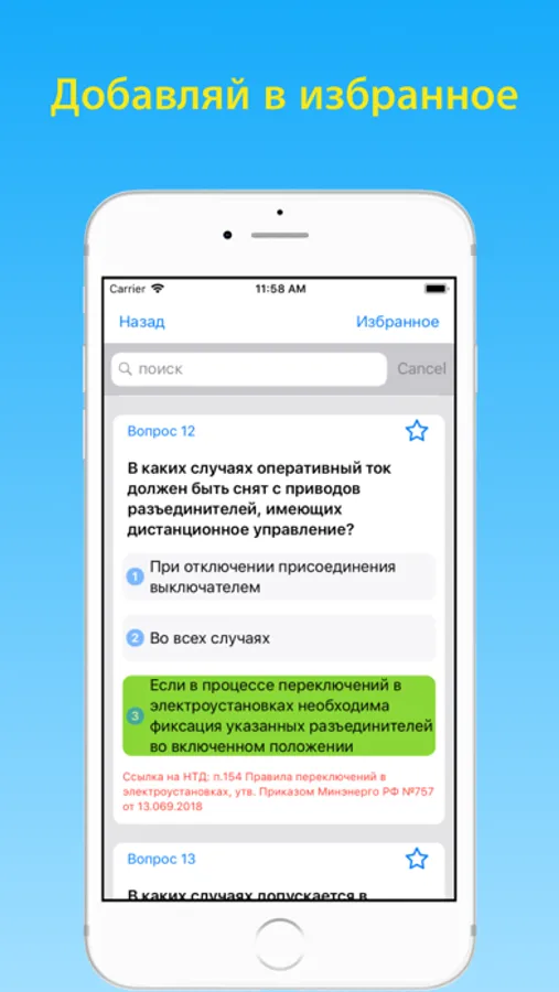 • Работа над ошибками - в режимах "Экзамен", "Марафон" и "Тренировка в избранном" Вы можете сделать работу над ошибками.