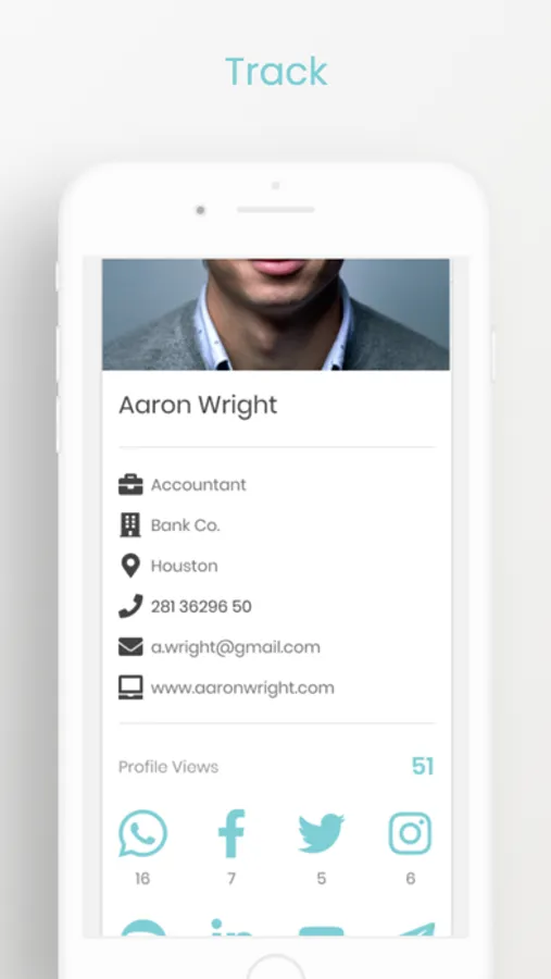 Get real time analytics. In your Linkcard App you will monitor who has viewed your card and social media.