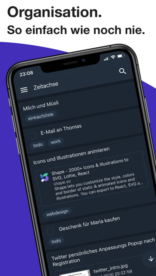 Tagstack ist die schnellste und effizienteste App zum organisieren deines Alltags! Mit Tagstack speicherst du Notizen, Bilder, To-Dos und Videos an einem zentralen Ort, sodass du alles in Sekundenschnelle wiederfindest!
