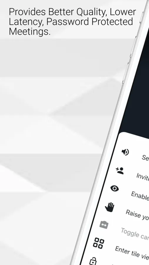 • Create a meeting and invite others to join the meeting by sharing the meeting code right from the app.