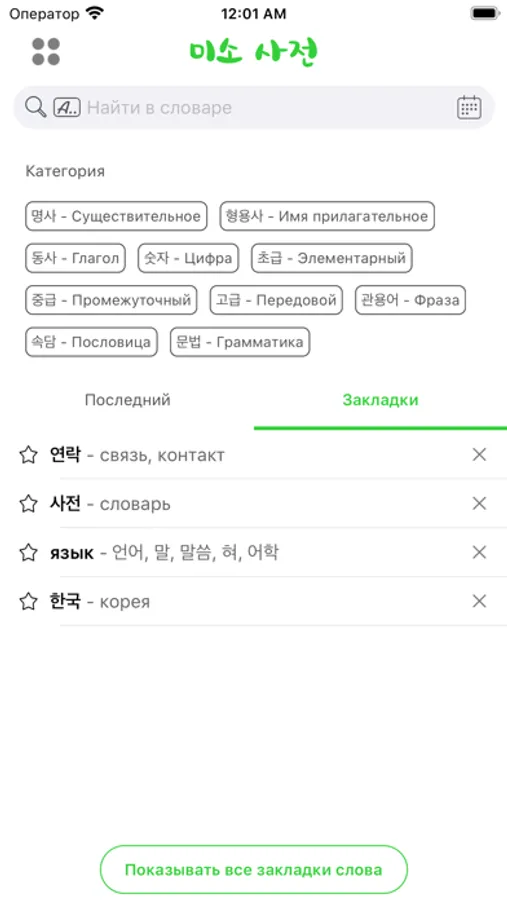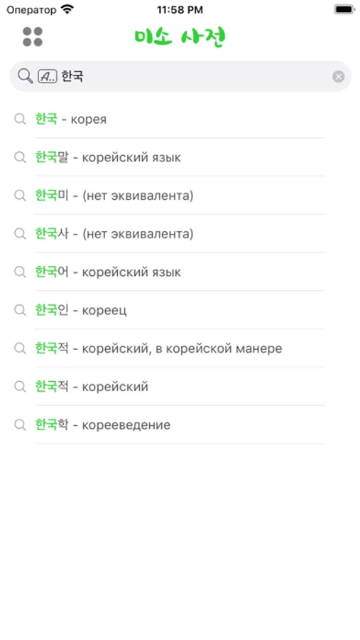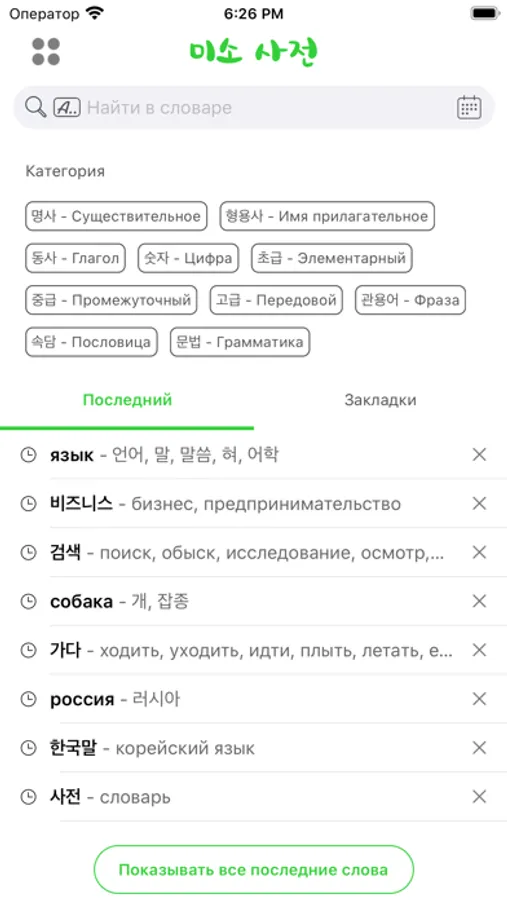 Korean-Russian-Korean dictionary app containing around 50 thousand words of beginner, intermediate, advanced levels.