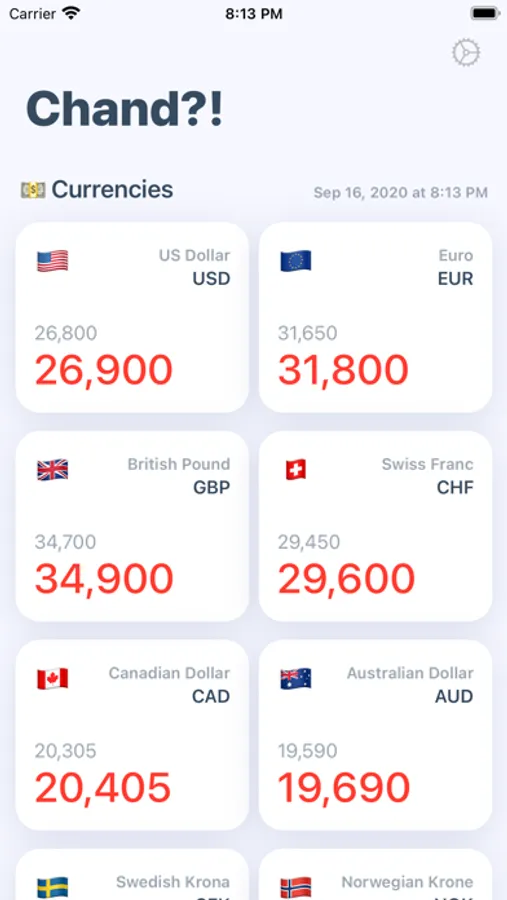Chand lets you access real-time exchange rates for 28+ currencies and gold prices on your iPhone and iPad. With an easy to use interface and widgets you can easily access the info you want.