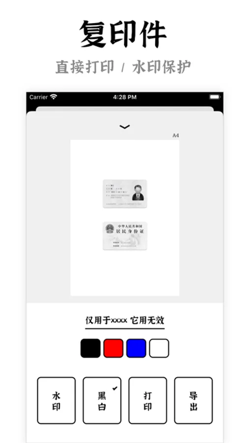 * 扫描后的身份证照片加上安全水印再使用,防止证件被盗用滥用。