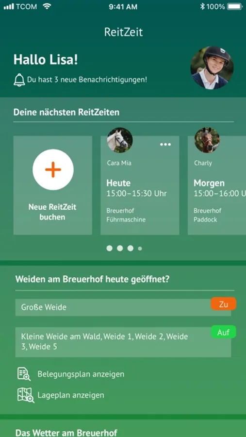 ReitZeit ermöglicht dir als Reiter direkten Zugriff auf alle Belegungspläne und erspart dir unnötige Wartezeiten und überflüssige Fahrten zum Reitstall.