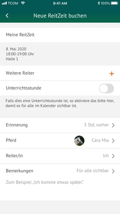• trage dich für bereits belegte ReitZeiten in die Warteliste ein