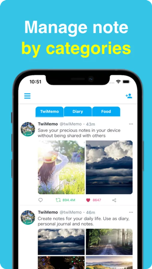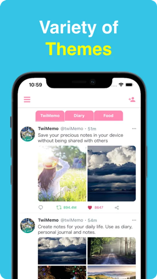 This is SNS style note app and Your notes will not be shared with others and will be stored within the app.You can set any icon, able to edit users profile.