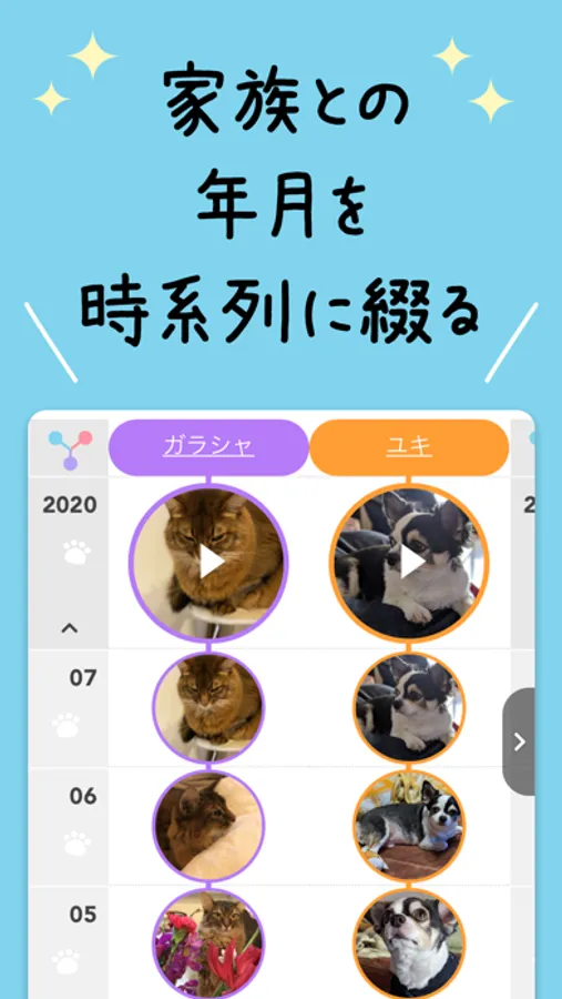 ● 毎月のベストショットを年表形式でながめて、いつでもほっこりできます。